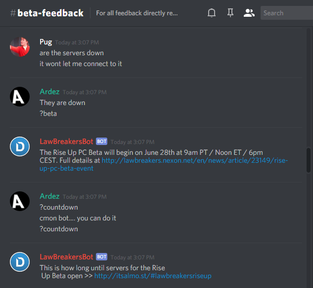 LawBreakers’ Discord bot
