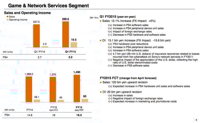 For the quarter ended June 30, 2015, Sony’s game business leapt 12.1 percent in revenues year-on-year, to 288.6 billion yen ($2.33 billion). The division saw profits of 19.5 billion yen ($157 million), a massive 350 percent leap year-on-year.